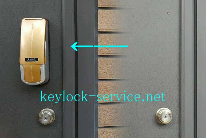 ヨド物置のカギがかからない鍵のトラブルで大津市石山に出動。鍵をお借りし締める方向に回すも、かからない。扉を少し開けた状態で試してみるとカギをかけると扉側から出てくるカマが柱側とうまくかみ合っていないようでした。